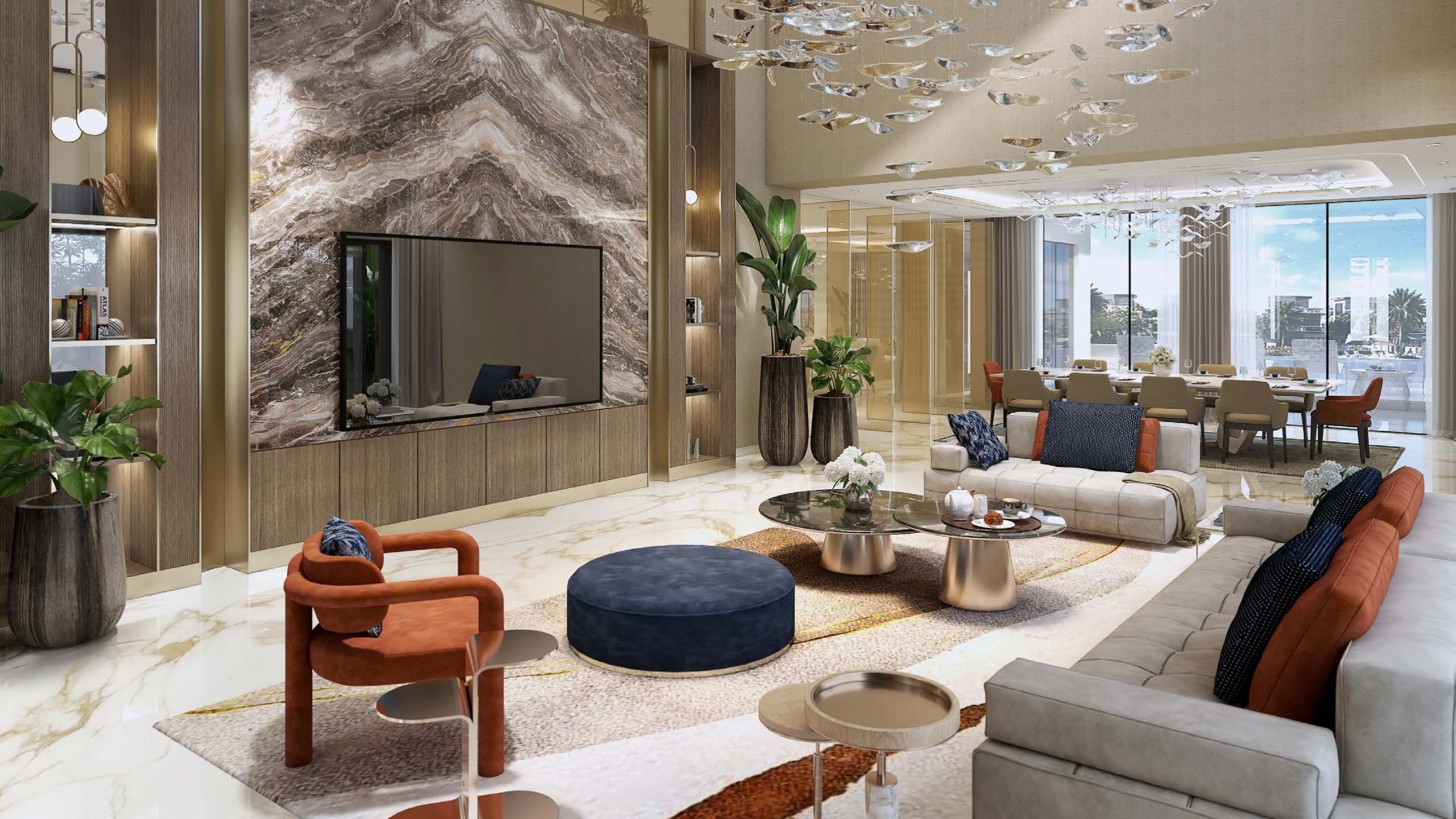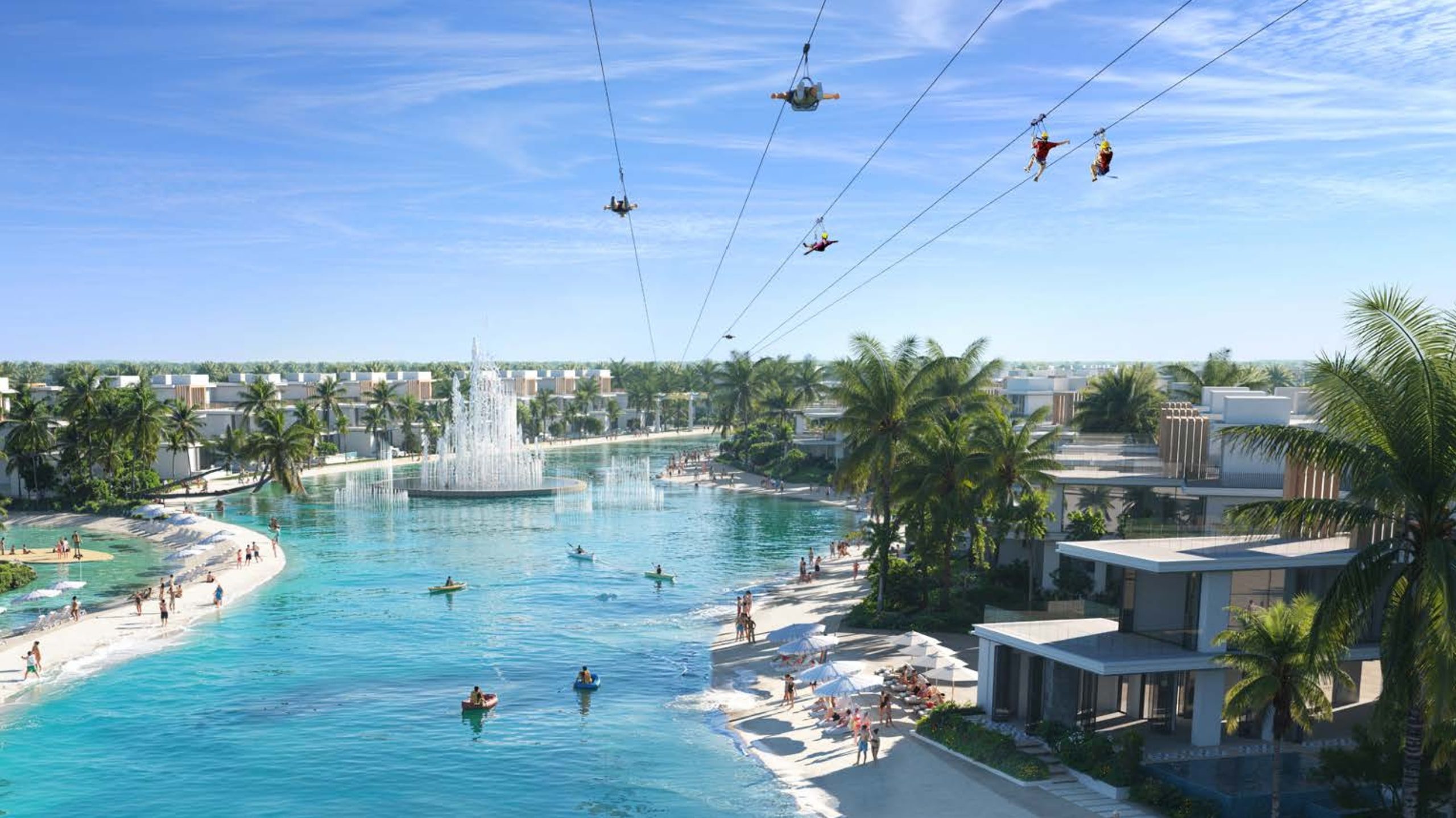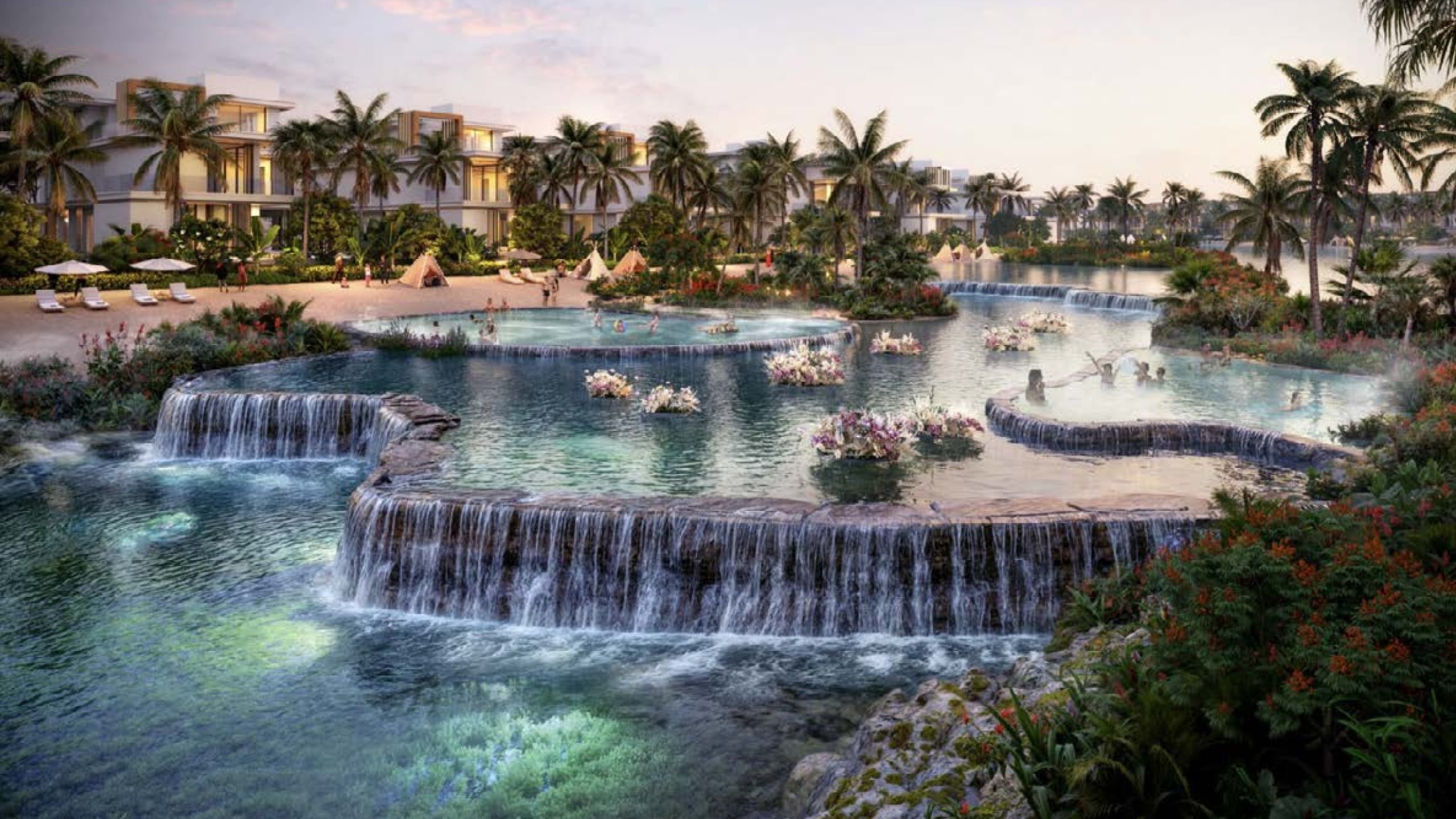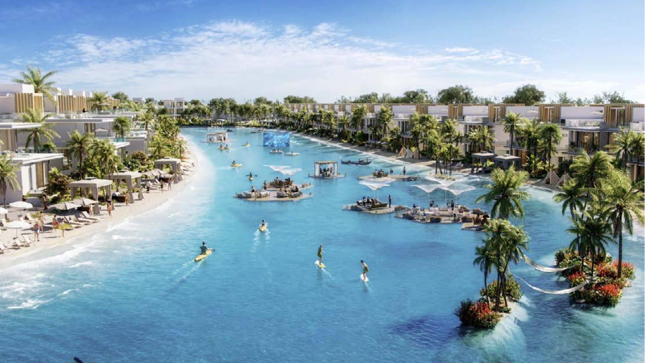 Set within a masterfully planned lagoon environment, this destination offers direct access to waterfront views, lush greenery, and serene landscapes. The location ensures a sense of privacy and exclusivity while still maintaining easy access to essential lifestyle amenities such as shopping, dining, and wellness spaces. Positioned strategically, the community is envisioned as a landmark attraction, drawing inspiration from global tropical getaways but offering it all in one place. Its central setting makes it accessible from main entry points, with a wedding venue at the gates and stunning views of the swimmable lagoon that create a welcoming and prestigious impression.