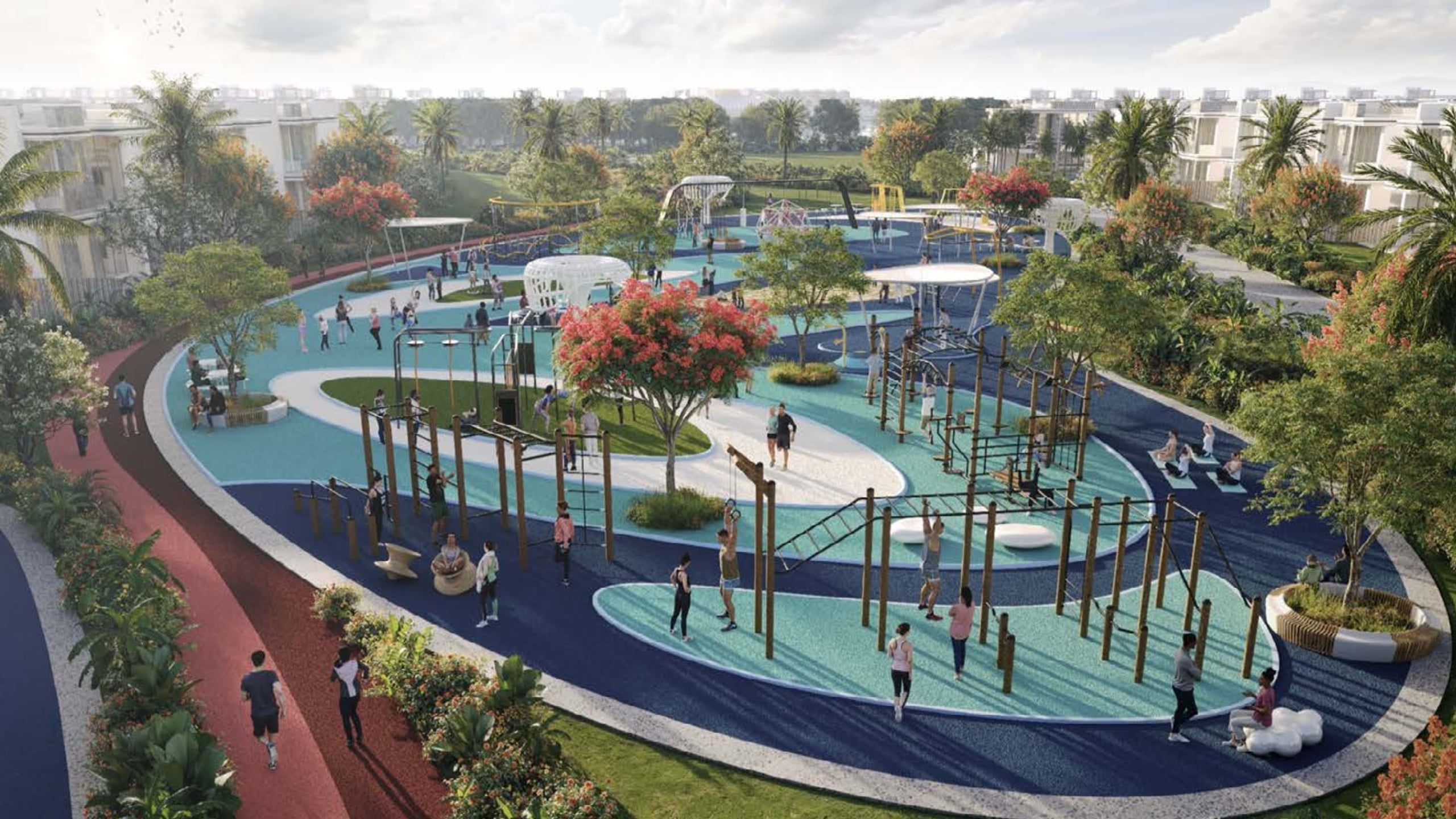 The community is designed around over 20 unique amenities that transform daily life into a resort-inspired retreat. Residents can enjoy a mix of adventure and relaxation, from thrilling experiences like ziplines, jungle swings, and aqua parks to calming spaces such as yoga floating decks, calisthenics parks, and fitness zones. Wildlife attractions including parrot parks, tortoise gardens, and iguana sanctuaries add a sense of wonder for families. The project also features private boat rides, hot springs spas, lagoon hammocks, waterfalls, and gondola-style paddling. Together, these features create a dynamic lifestyle destination where leisure, wellness, and entertainment coexist in harmony.