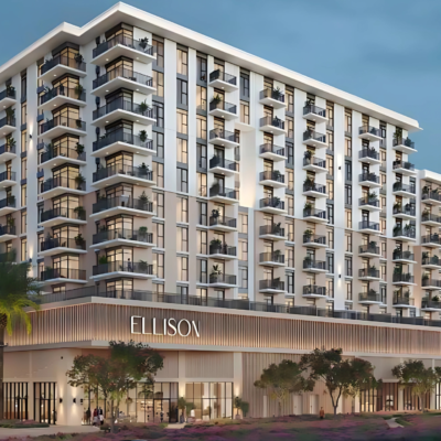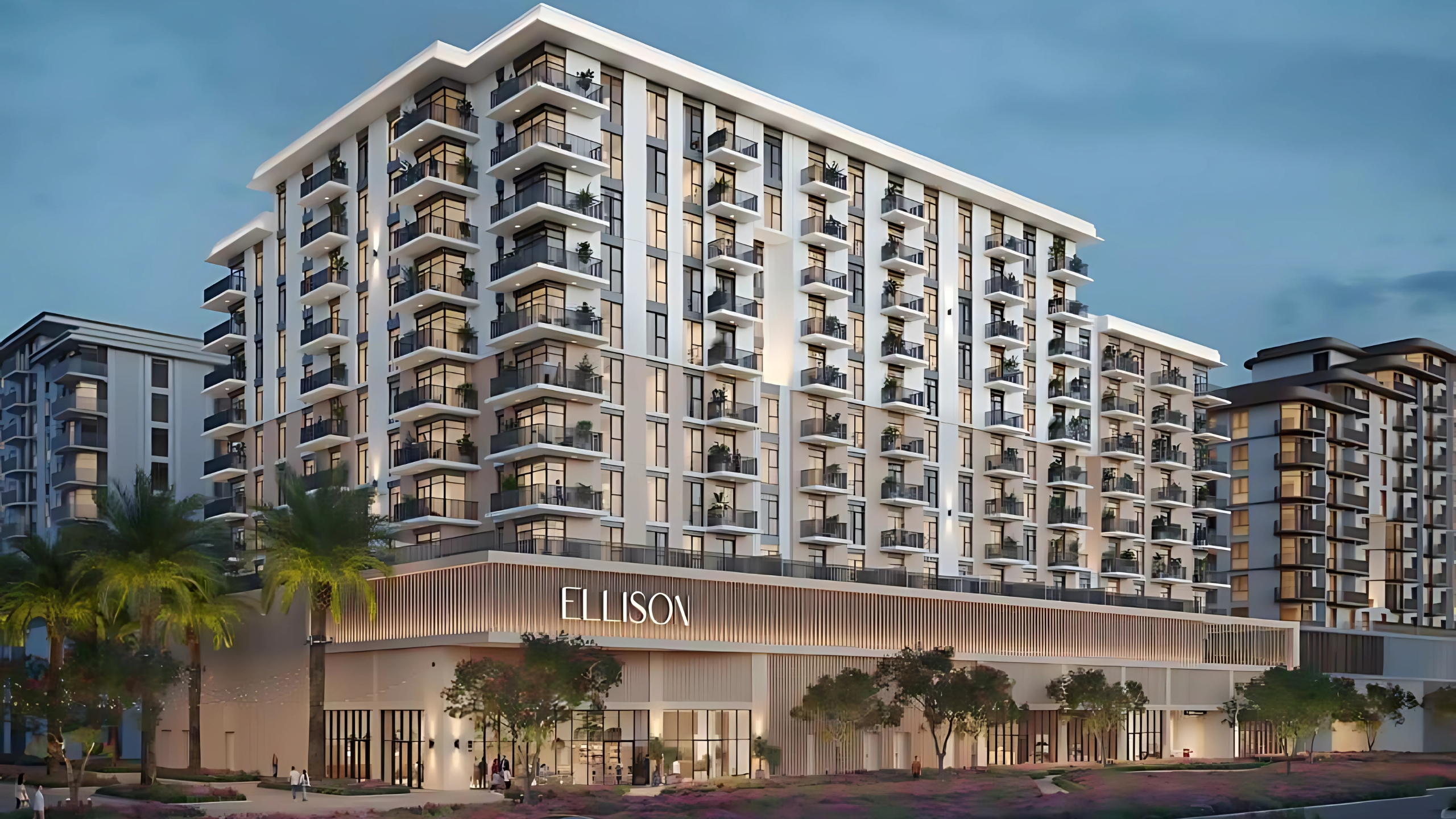 The architectural design of Ellison emphasizes contemporary elegance, functionality, and a strong connection with the outdoors. Minimalist façades feature clean lines, earth-toned hues, and geometric patterns that create a sophisticated visual appeal. Floor-to-ceiling windows and expansive layouts allow natural light to fill interiors while enhancing the sense of space. Apartments and duplexes include glazed porcelain flooring, modern kitchens with premium appliances, built-in wardrobes, and spa-inspired bathrooms. The development seamlessly integrates indoor and outdoor environments, creating a harmonious living experience. Overall, the design combines modern aesthetics, comfort, and lifestyle-focused functionality, delivering a refined, luxurious, and family-friendly residential environment.