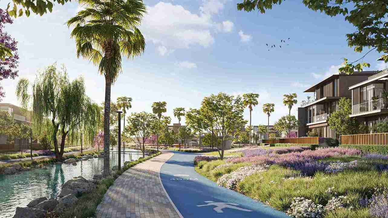 The community offers a wealth of premium amenities for all ages. Residents can enjoy a yoga lawn, running tracks, a serene lagoon, and a wave pool for relaxation and recreation. Sports facilities include basketball, tennis, and padel courts, as well as a skate park, outdoor gym, and indoor fitness center. Families benefit from safe children’s play areas, an exclusive dog park, and social spaces like an events lawn and amphitheater. Retail outlets, educational institutions, and a mosque add everyday convenience. Lush landscaped spaces create a vibrant community atmosphere that fosters wellness, connection, and an enriched living experience.