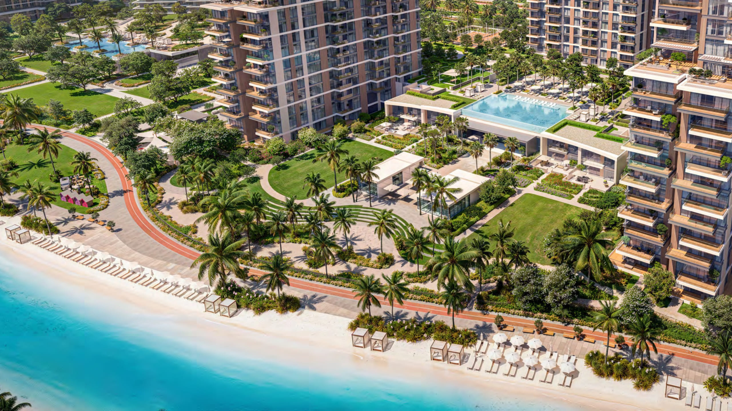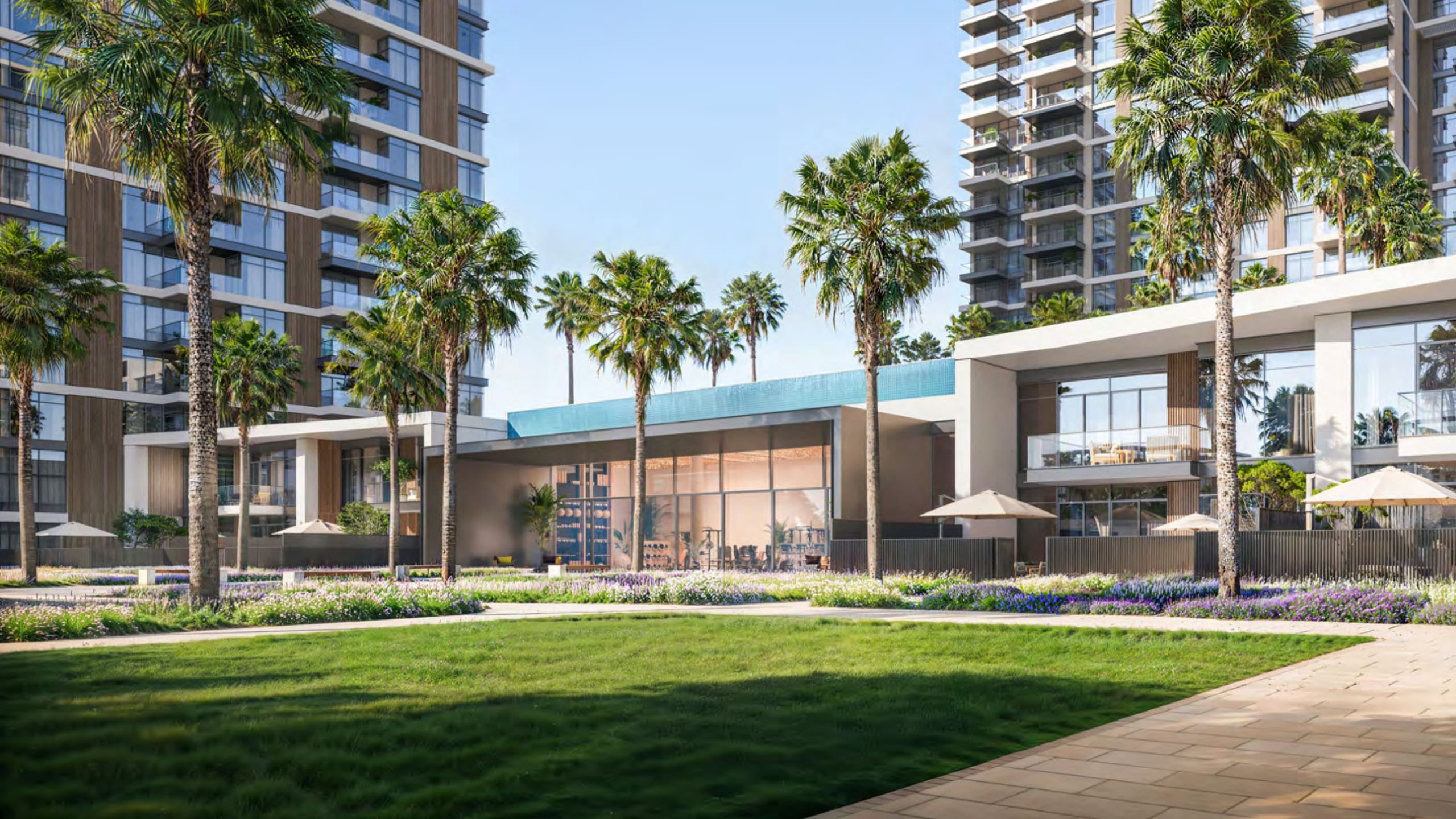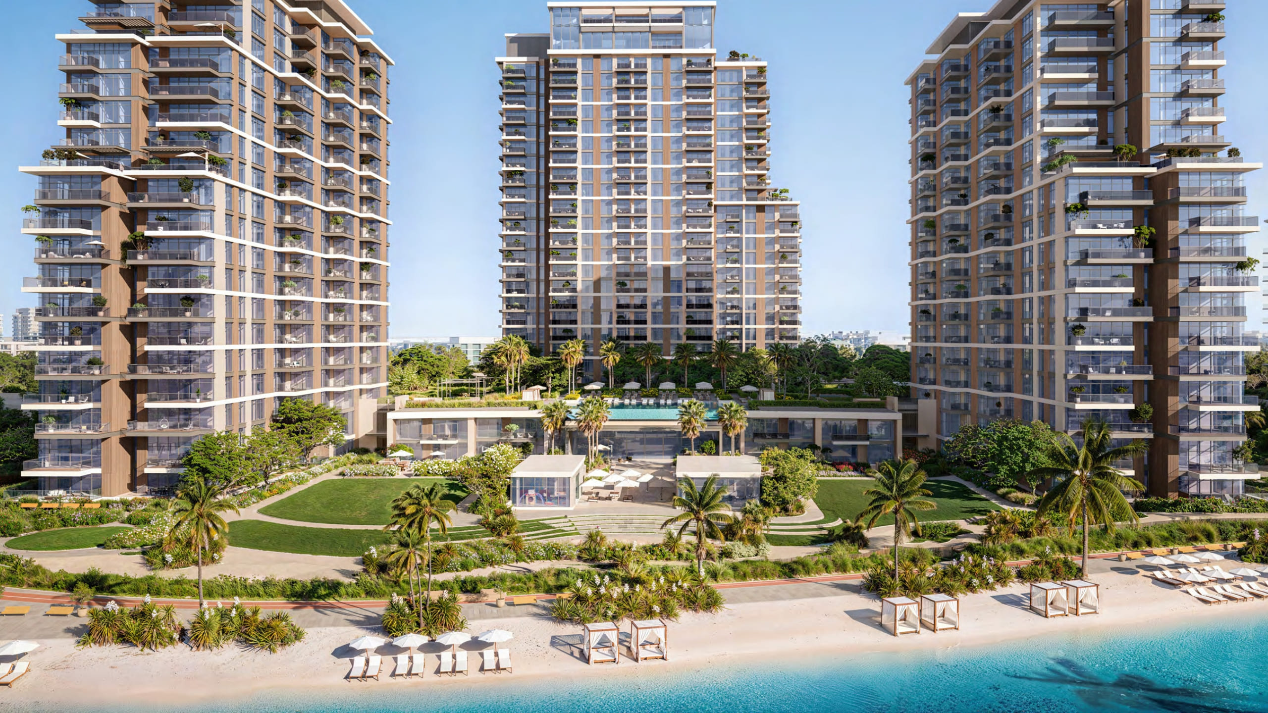 The architectural design of Naya Residences is a striking expression of modern elegance blended with natural harmony. The development features tiered, green-roofed towers that seamlessly integrate with the surrounding landscape while maximising panoramic views of the crystal lagoon and Dubai skyline. Expansive floor-to-ceiling windows flood interiors with natural light, creating open and airy living spaces. Staggered balconies enhance visual flow and strengthen the indoor-outdoor connection. Every architectural element is carefully crafted to combine aesthetic beauty with functional excellence, delivering a refined living environment that embodies sophistication, sustainability, and contemporary luxury.