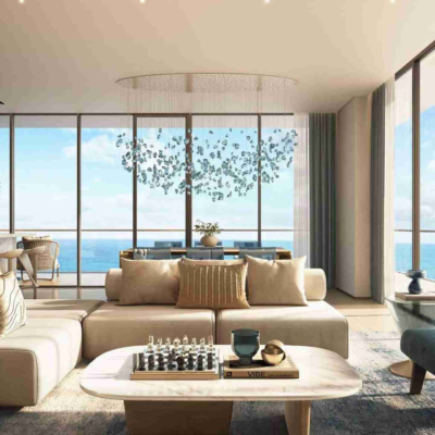The architectural design of Damac Shoreline harmoniously blends modern construction with the natural coastal environment. Interiors draw inspiration from water’s fluidity and sand dunes, creating a seamless connection between indoor and outdoor spaces. The façade incorporates private beach access and panoramic sea views, emphasizing openness and elegance. Contemporary artistic elements by Vincent Faudemer add a whimsical, refined character to the residences, enhancing exclusivity. The ground and rooftop levels feature resort-style facilities, including pools and wellness areas. Every detail, from material selection to structural layout, reinforces a luxurious lifestyle, combining aesthetic innovation with functional design to deliver a distinctive beachfront sanctuary.