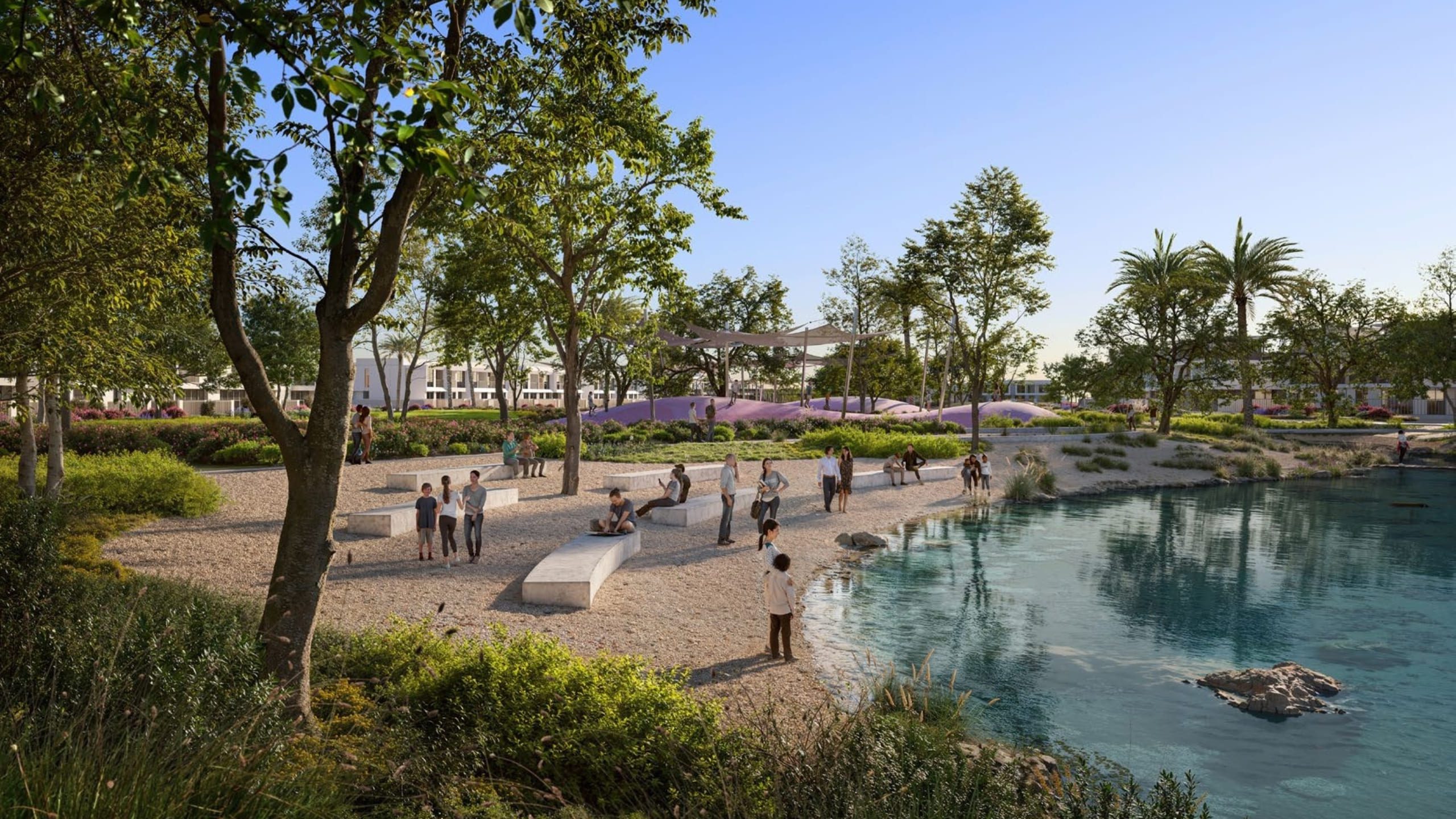 Vindera offers a rich lifestyle enhanced by a wide range of leisure amenities and community experiences. Outdoor activities include tennis, basketball, padel courts, a junior soccer field, skate park, and scooter track. Wellness is supported by yoga spaces, calisthenics areas, and meditation decks, while families enjoy botanical gardens, shaded promenades, and BBQ areas. Children have access to adventure playgrounds, discovery trails, and amphitheater-style landscapes for creativity and fun. Practical amenities such as supermarkets, dining outlets, and swimming pools add convenience. With thoughtfully designed spaces for relaxation, fitness, and social interaction, Vindera creates a holistic living experience for all ages.