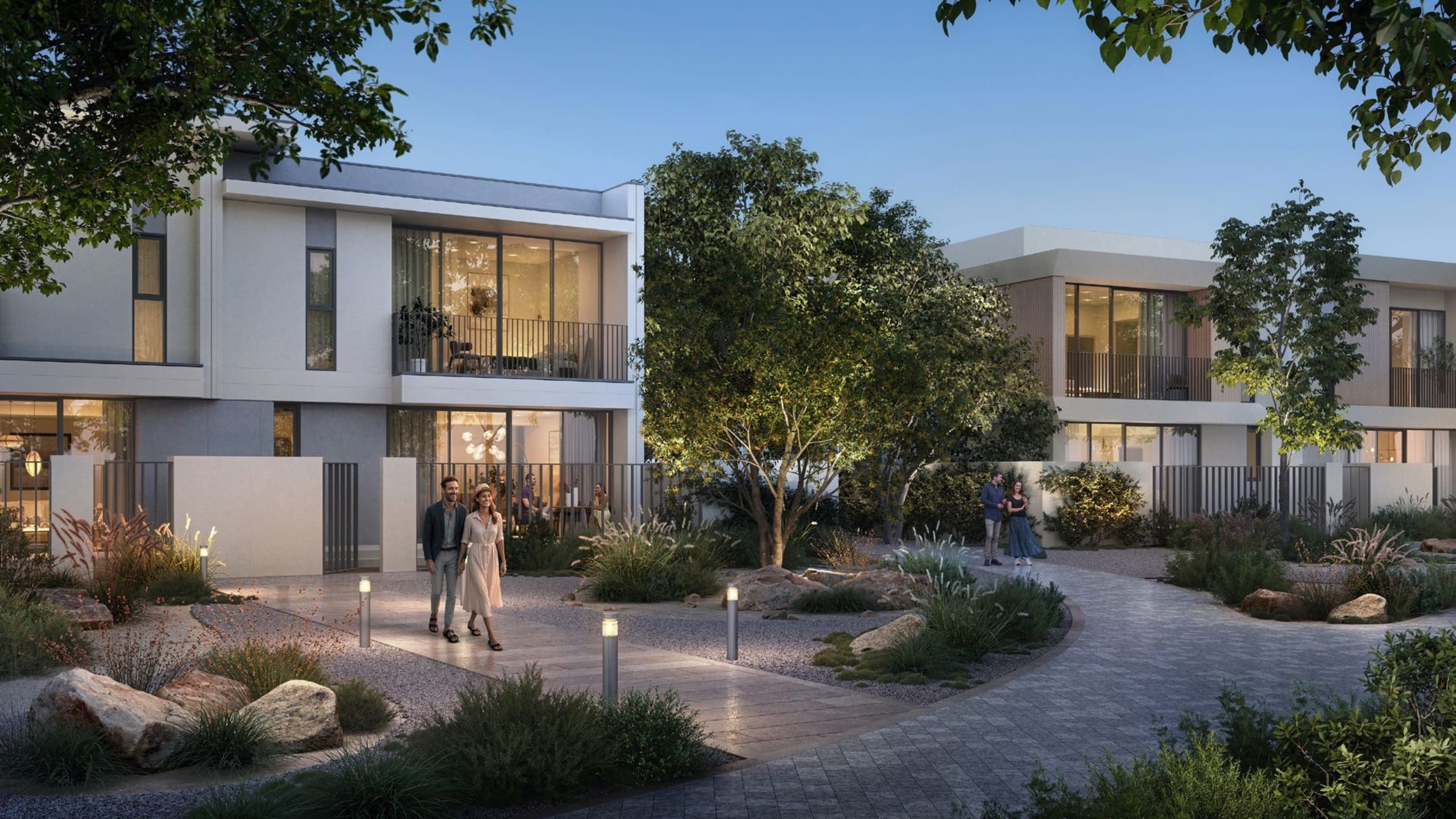 The architecture of Vindera at The Valley Phase 2 emphasizes simplicity, elegance, and harmony with the landscape. Each townhouse features clean lines, balanced proportions, and neutral tones that complement the greenery around them. Homes are oriented for maximum sunlight, cross-ventilation, and framed views of meadows, streams, and the central park. Landscaped courtyards and terraced garden pockets extend indoor living into nature, creating seamless indoor-outdoor experiences. Designed with a human scale, the homes feel inviting while remaining modern and timeless. This approach ensures the community matures gracefully, with architecture and nature evolving together to define a sophisticated, enduring neighborhood.